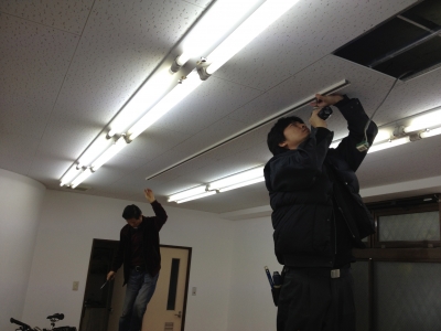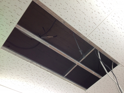 天井の一枚を剥いで、そこから配線を通し