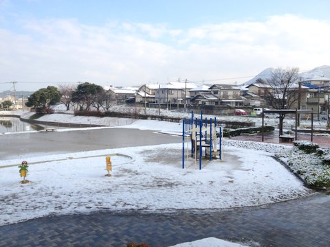 明け方まで降り続いた雪で、近所は雪化粧。(撮影時少し解け気味だったですのが。)