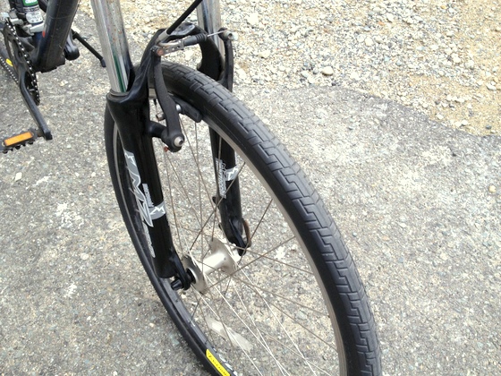 以下、先日通勤用としてTannusノーパンクタイヤを取り付けた例です。