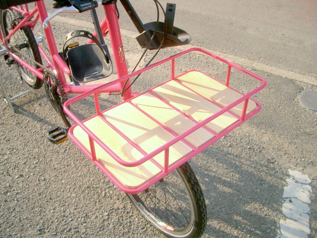 将来お子さんが大きくなってきたら、リア側にYepp のチャイルドシートを取り付け出来るように初めからリアキャリアもご注文頂きました!まとめて頼めばフレームと同色で塗れるので良いですよ!