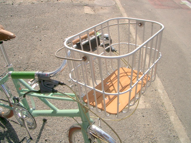 買い物にもガンガン使えるように前かごも設置。使わないときや、エコバッグ代わりとして店内に持ち込めるよう簡単に着脱できるBrooks のHOXTON WIRE BASKET(税抜20,000円)です。高額なだけあって、細かいつくりや質感等、最高級の逸品!そして木製底板を使っているのに結構軽いのも流石と唸ってしまいます。