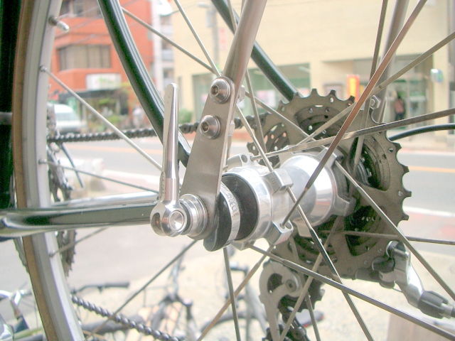 下側はクイックシャフトに合わせて取り付けておりますが、キャリアダボのある自転車ならばそちらに取り付けてもOKです。今回は付いている部品をすべて使いクイック止めにしました。