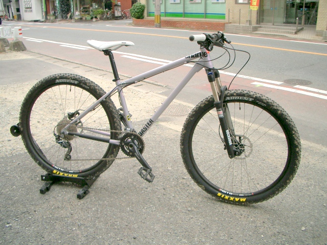 はい、いきなり汚れております。今までMTBのラインナップが薄かった当店の試乗車として仕入れました。で、画像も撮らんとそそくさと走りに行ってきました。というのも現在、通勤途中の林で造成途中の場所があり、早朝及び深夜、土日ならこそっとお邪魔して遊べるんです。通勤途中というのが良いです(笑)