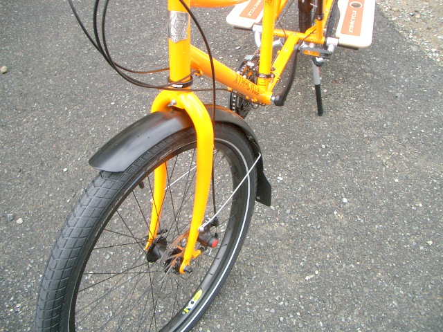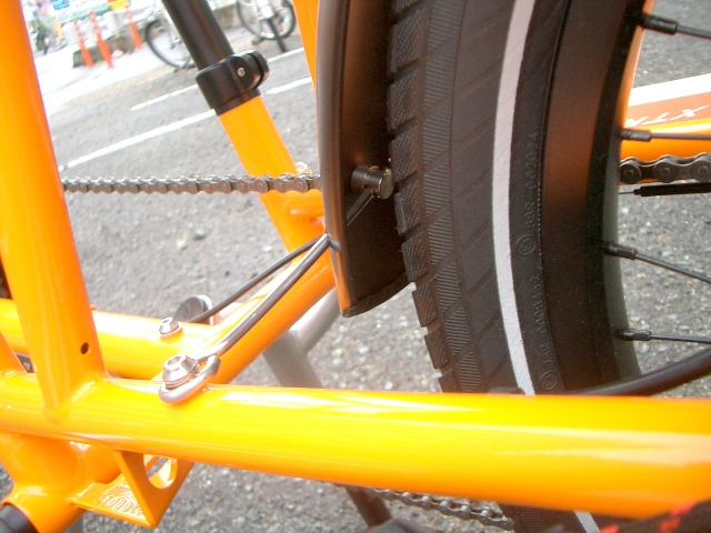 シッカリタイヤを覆うフルアルミフェンダー。ちゃんと両サイドは内側に巻き込む処理もされているので、フェンダー横から雨が流れにくい!使う人の事をしっかり考えて作られたフェンダーですね。価格は前後セットで10,800円!これは買いデスヨ!!