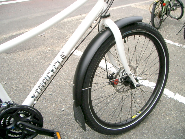 それから今回も個人的に超おすすめなフェンダーを取り付けました。使う時に天候や路面を気にして走るなんて、XTRACYCLE としては本望では無い筈。 いつでもガンガン使用したい(使用出来る)そんな自転車であってほしいので、という押しつけです。