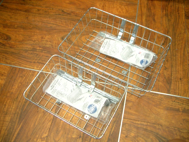 バスケットサイズは 縦・32cm 横・45cm 高さ・15cm。こちらはフォークダボに取り付けました。