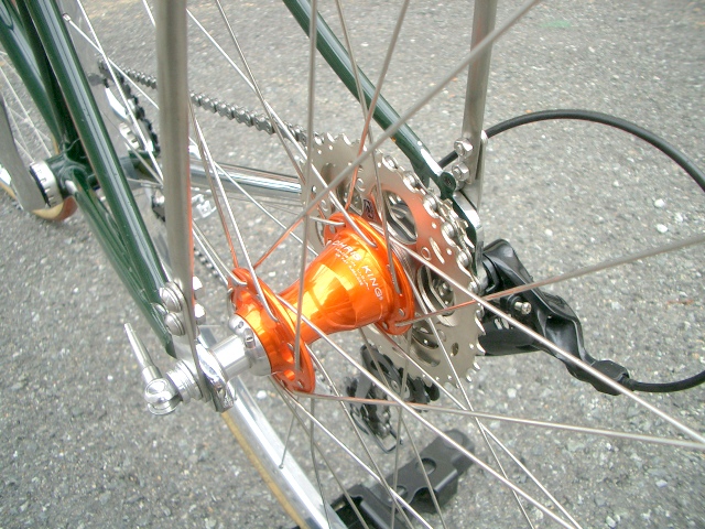 重量を考えつつ、少なすぎるスポーク本数もイマイチ好みでないので、前後とも28本です。それにしてもChris King のハブはヌルっと気持ちよ~く回る。漕ぐ回数も(ホント気持ち)減った気がします。
