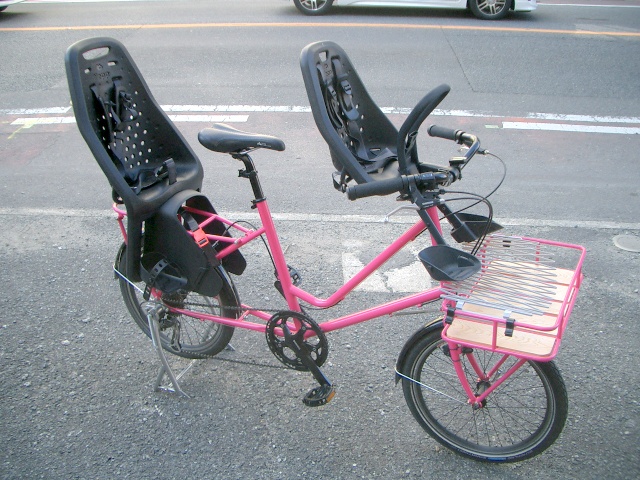 前側に乗せていたお子様が大きくなり遂に後ろ側にデビューという訳です。フロント側は下のお子様の為にそのまま装着しておきます。