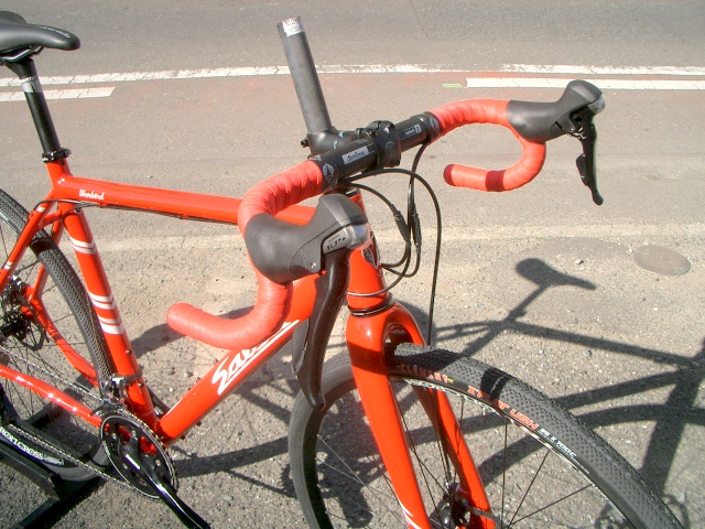 クイックやシートクランプもSalsa を使用。勿論ステムもね。ブレーキキャリパーはSram BB7。因みにこの状態で実測9.6Kg。チューブレス化や後チコッとカスタムすれば確実に8kg台突入だわさ。