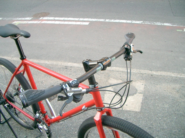 シートポストとステムはTHOMSON。ハンドルはSimworks NittoのLittle Nick Bar。新しいグリップは定番のErgonのGS-1と安定のパーツ構成。