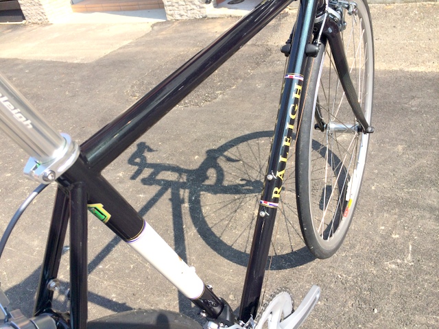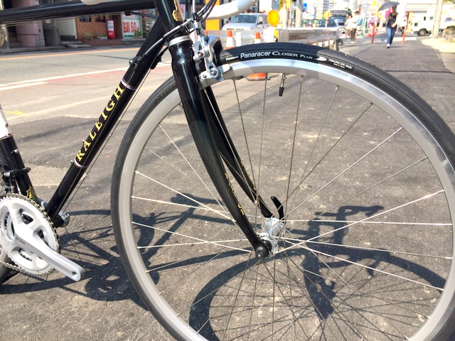 フレームはレイノルズ631チューブ。正確にはクロモリではなくマンガンモリブデンという素材になります。CRNに比べ上質なチューブは走行中の微振動や下からの突き上げをしなやかに和らげつつ、快適に確実に前へ進むための固さを持ち合わせとります。そして何より美しか~。