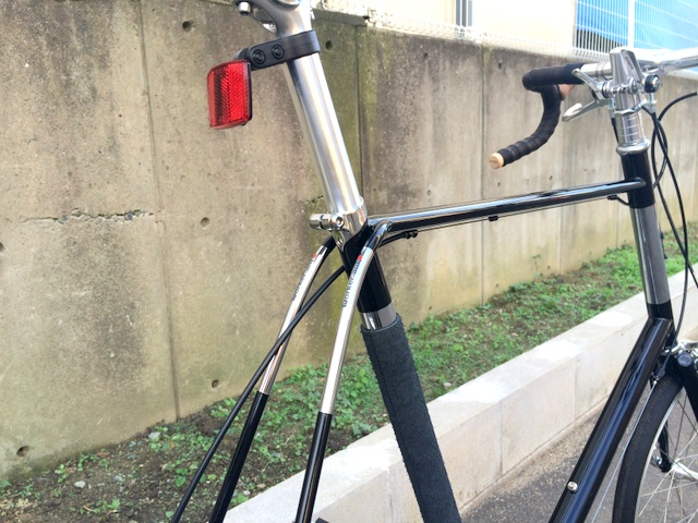 タイヤがパナレーサー、ミニッツタフになったことで更にシャープさの増した406Steel。すごくカッコいいです!今回はブラックなので何から何までブラック!でもなぜかドロップハンドルの所に手を置けるハンドレストはブラウン・・・ワンポイントでカッコいいので良しとします。