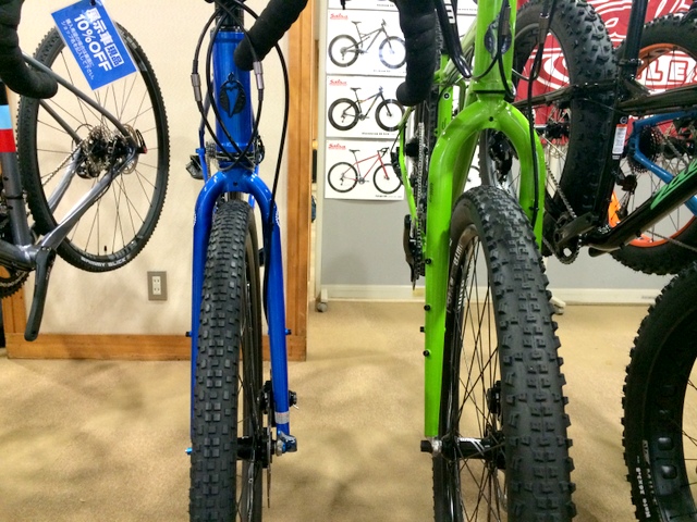 他違う所とすれば、やはりタイヤ。29erのFargoに対し、700c のVaya。フォークとのクリアランスが一目瞭然。この違いを購入時の選択にしてもらえればと。詳しくは聞いて下さいね。