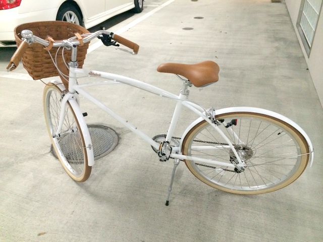 今回はPeterboro Basket の Large Bicycle Basket のラージ。この自転車の雰囲気とメッチャあって最高にかわいい仕様になりました。