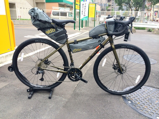 今回、Apidura代理店様よりフレームに取り付けて展示してね~(はあと)というお達しを受け、今までフレームに取り付けて展示していなかった(のもどうかと思うのですが)ので、先日入荷したSalsa VayaDeore をベースにフル装備にて展示する事に致しました!!こうやってフル装備するとやっぱかっこいいですね!!・・・しかし一つ買うとすべて同じメーカーにしたくなるのは日本人だからでしょうか???