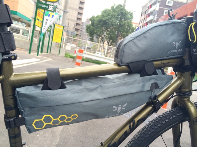 弊店にてフレームバッグというと、一番人気はApidura。他にもBlackburnとかフェアーウエザーとかレペレイトデザインとか色々あるのでお客様の装備とか諸々ご相談の上で提案させて頂く事が多いですが、個人的に好きだからついね・・・