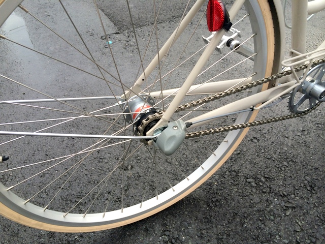 今回は基本街乗り、でもこのデザインが気に入って、もう少し走るようにできないか?というご要望にお応えいたしました。TokyobikeLite はリアエンドが120mmなので、普通の外装変速機は使えません。使えるものとして一番安価で耐久性のあるシマノの内装3段ハブをセレクト。このハブ構造がシンプルなので中々壊れません。耐久性抜群のパーツです!!