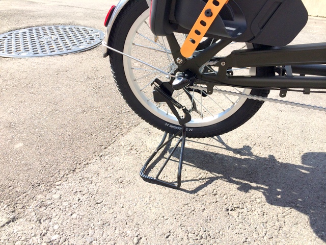 それからスタンドもチャイルドシート対応する様に純正オプションのスーパーラクラクワイドスタンドに変更。メリットはやはり安定感。それからお子様を乗せたままスタンドを起こそうとすると結構重いのですが、このスーパーラクラクスタンドならば、スタンドを起こすのも超ラックらく。価格は4,480円(税別)となりますが、日々の事なのでこのスタンドチャイルドシートを取り付ける場合にはお勧めしますよ~。 ※因みにBikke等には標準装備です。