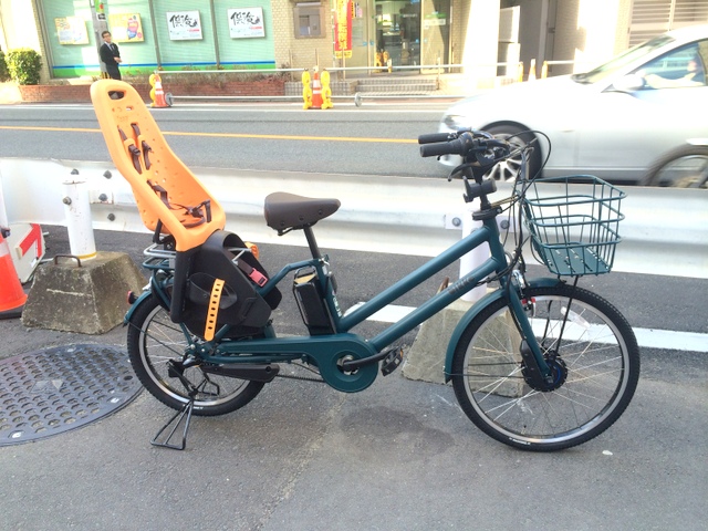 元々あるBikke と違い、男性でも送り迎え出来るスタイリングという事で開発されたGri。という事でフロント車輪は24インチでちょっと大きめな感があるのですが、後ろ一人乗せた時の適応身長は142cm~と今までのBikkeよりなぜか1cm低くなってます。なんで、これは小柄な方にも超おすすめ。