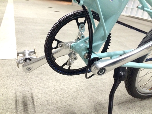 BikeFriday は折りたたみ時にチェーンが外れると言っても良い構造だったのですが、このヒンジフォワードシステムでそれを見事に解消。ベルトドライブ仕様をオーダーすると必ずこの仕様になります。