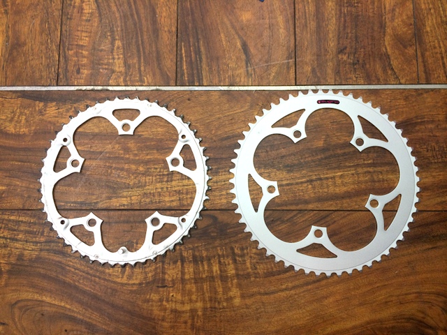 という事で今回は、リアのギアでいうと1段重くなるくらいの56Tに交換する事にしました。
