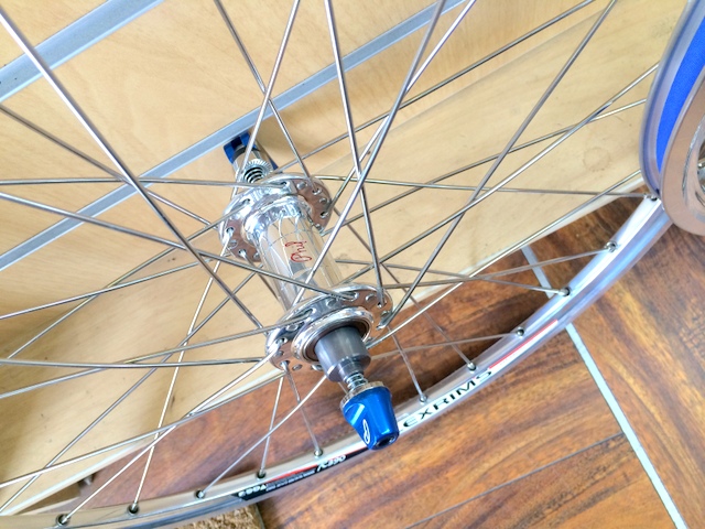 次のホイールは自転車のフロントに合わせてパーツをアッセンブルし組み立てたホイールです。