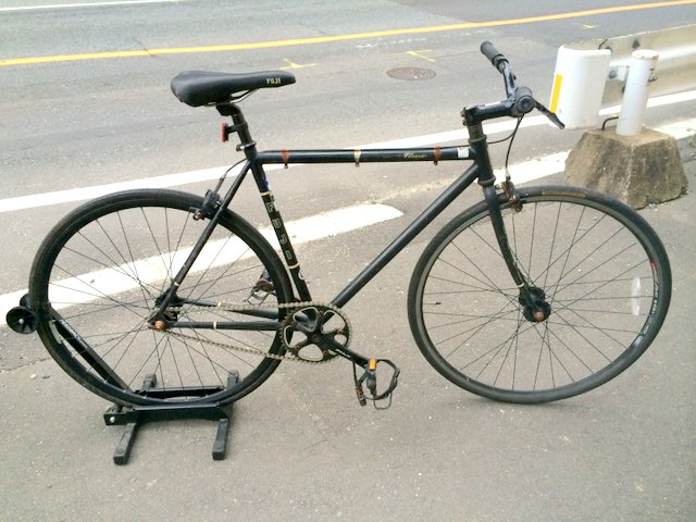 本日のブログはメンテナンスというかカスタムな話題。街乗りに使っていると、日々の足として酷使するので気がつくと結構ヘタっている、という事ありませんか?頻繁にメンテナンスに来て頂ければそうでもないのですが、皆さん忙しい方が多いのか、まとめて修理!という人もまあまあいらっしゃって。本日のFUJI フェザーも其の1台。以下は持ち込まれた時の状態。