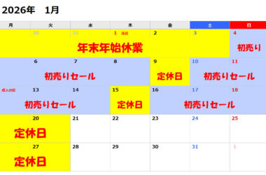 2026年 初売りは1/4(日)からです!スタートダッシュでお買得!!!