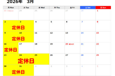 遅くなりましたが、今月の予定です。 通常通りで毎週月曜火曜を [ … ]