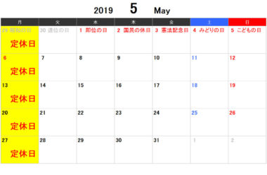 ゴールデンウイークと5月の営業案内