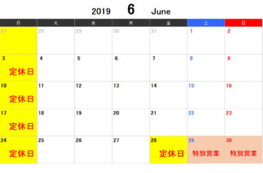 6月の営業案内