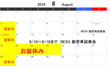 2019 8月の予定