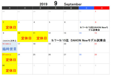 2019 9月の予定