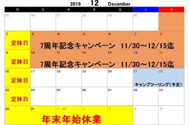 2019 12月の予定