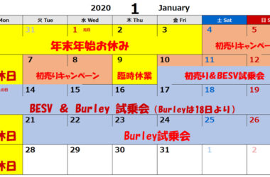 2019年 1月の営業予定